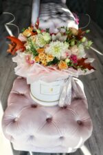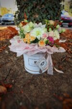 Acest mixt de flori inedit cu trandafiri, dalii, frezii și lisianthus adună la un loc flori colorate și parfumate într-o cutie albă pur elegantă, realizată pentru a bucura inimile celor care primesc acest aranajament de o frumusețe rară.