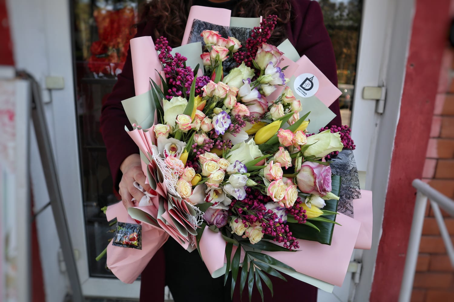 Acest buchet cu flori de final de primăvară emană căldură, iubire și sentimente prin toți porii. Parfumul înmiresmat al liliacului va fi mirosul predominant și tot odată și cel mai iubit, frumusețea și gingășia celorlalte flori fac acest buchet cu totul deosebit și fac din el un cadou de neuitat. Acest buchet mai cuprinde, pe lângă liliac și diverse tipuri de trandafiri, lalele și orhidee, înnobilate cu un amblaj abundent de culoare roz.