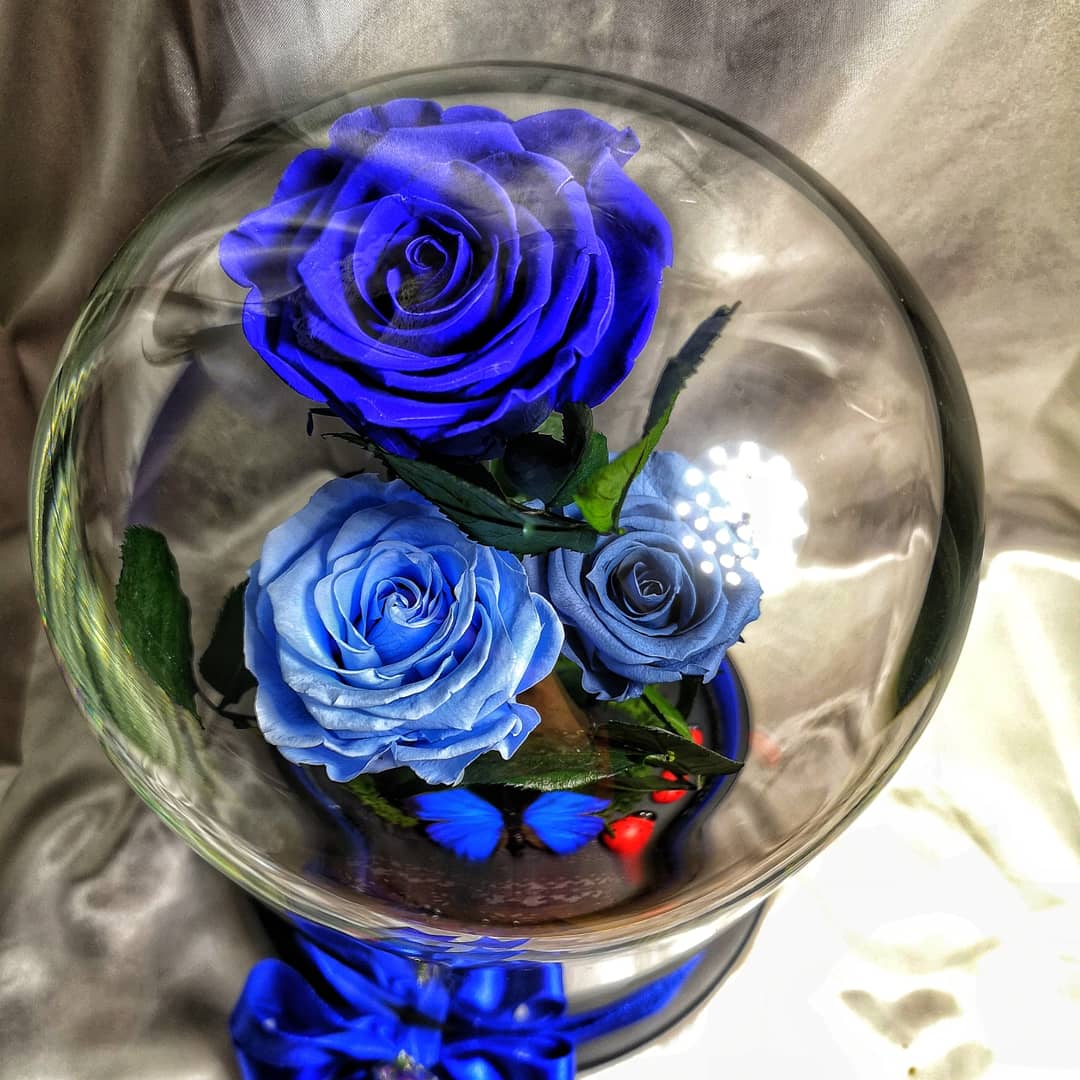 Cupola 3 trandafiri criogenati Albastru Degradee